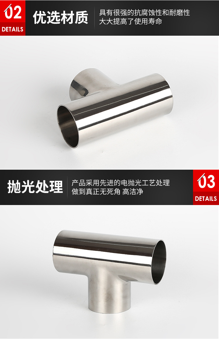 产品详情:304卫生级三通316L焊接三通完整标准等径异径赞同定