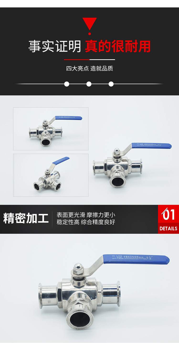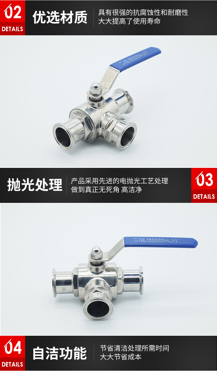 产品详情:三通快装球阀304L卫生级球阀316L快装球阀