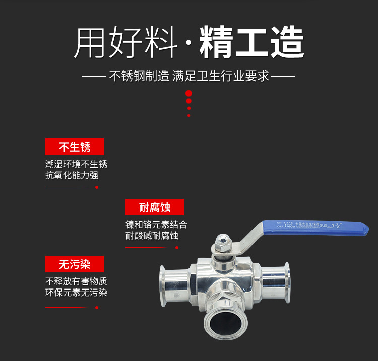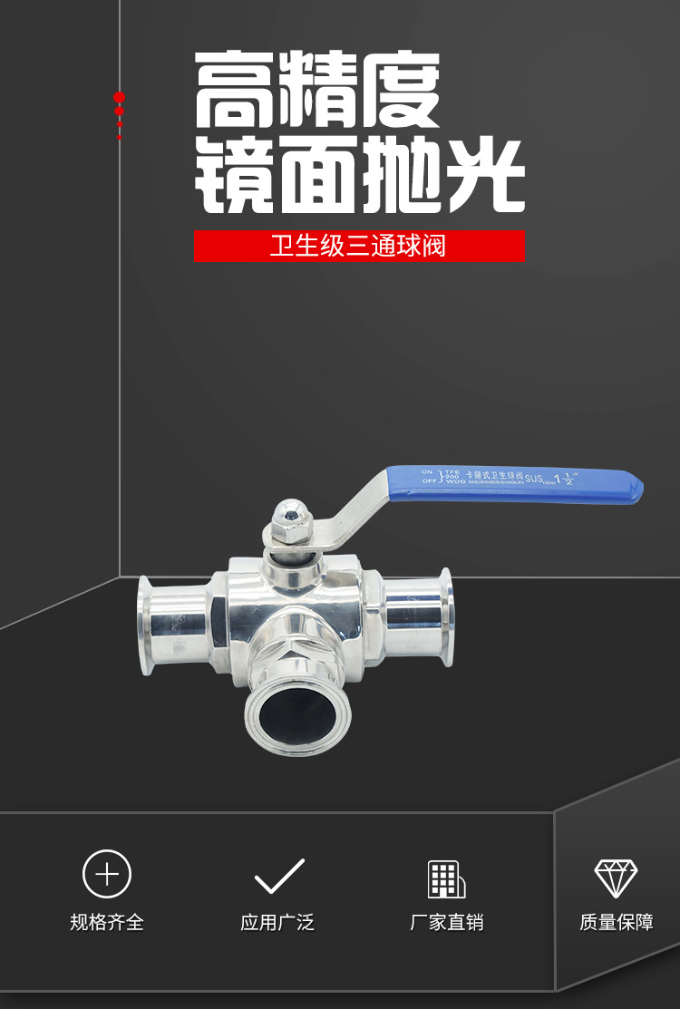 卫生级快速安装的三通球阀普遍用以许多行业,例如食品,葡萄酒,饮品,乳制品,精密化工,制药和海洋生物工程。
